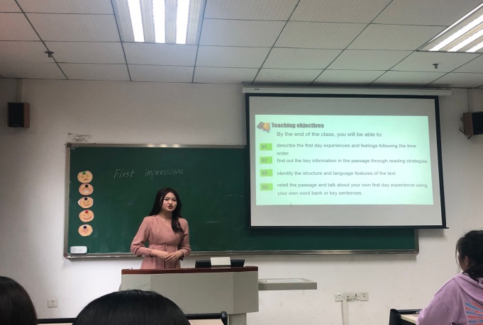 第一次站上讲台,同学们感慨万千,有期待已久的兴奋与喜悦,也有初出茅庐的紧张与焦虑。有同学透露,在活动开始的头天深夜,依旧在反复查看自己的幻灯片和备课记录,希望自己的“教师首秀”能够完美展现。“哎呀,我好紧张呀!站上去就突然不知道讲什么了。还好都讲完了!”一位刚走下讲台的同学,舒了一口气长气,感叹道。万事开头难,作为仍处本科二年级的同学,能够站上讲台,面对完全陌生的面孔,进行全英文实景教学展示,实属不易。