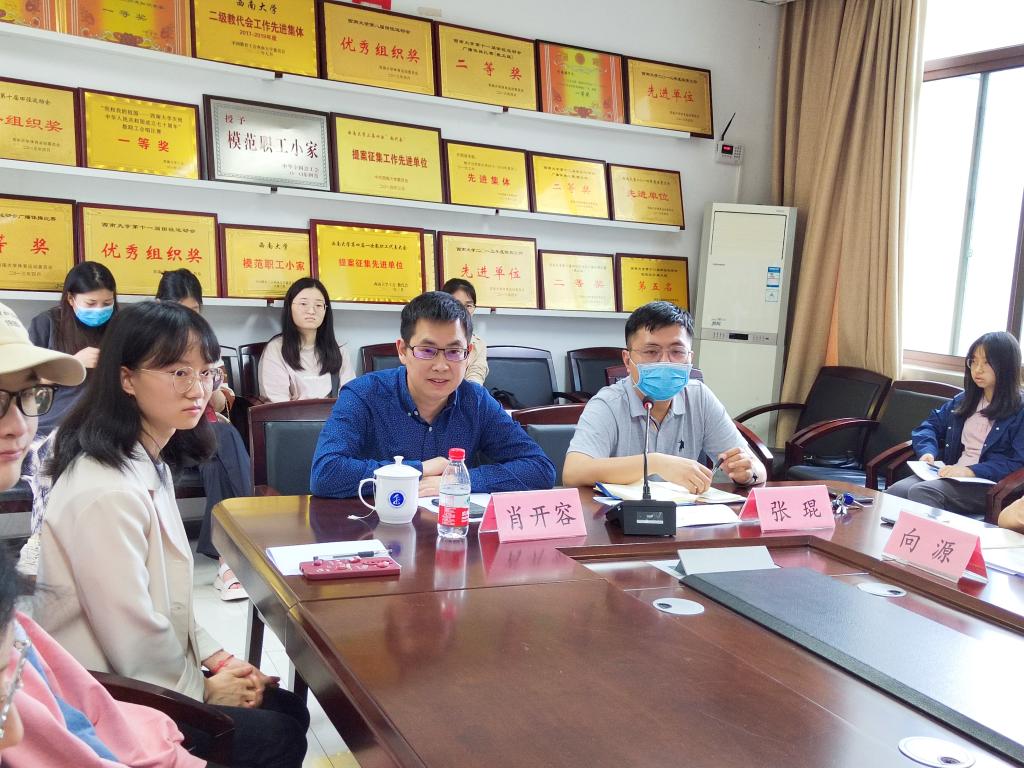 肖开容副院长致辞。他表示,学院非常重视研究生就业,本次座谈会的意义重大,特别感谢各位导师能主动关心指导研究生的就业,通过座谈会加强师生之间的沟通联系,帮助学院全面了解当前研究生就业进度以及存在的痛点难点,给出一些建议和支持,共同努力想办法为同学们的就业提供指导与服务。