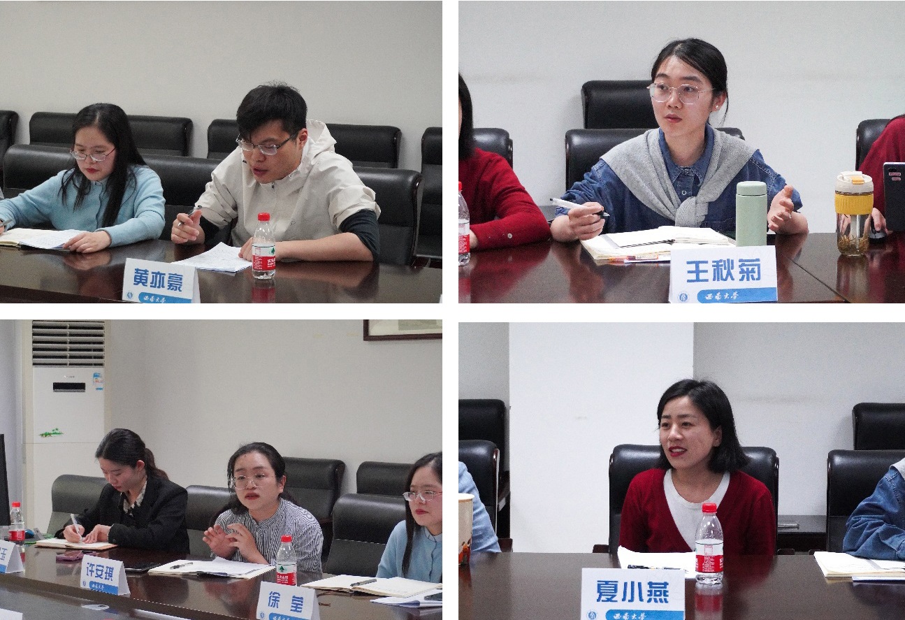 提问答疑交流环节,学院本科2022级辅导员黄亦豪,本科2019级辅导员许安琪、夏小燕,本科2021级辅导员王秋菊分别结合项目申报准备情况,就如何找准思想政治工作切入点,如何做好项目申报规范,如何选择恰当论证方式,如何有效开展调查研究等问题与王教授进行了交流。