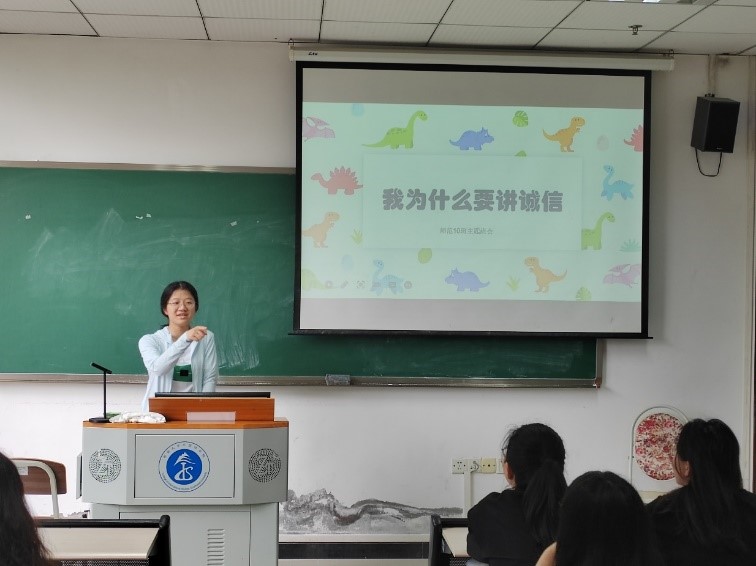 根据学院要求,按年级设置主题,各班级开展了“我为什么要讲诚信”主题班会。通过观看诚信视频、学习诚信事例等方式,同学们加深了对诚信的认识;结合关于学业考试、评优评奖、奖勤助贷等方面存在的不诚信现象,同学们深入探讨了不诚信现象的成因及危害,汲取反面教训,形成警示效应,督促同学们树立正确的诚信价值观念。