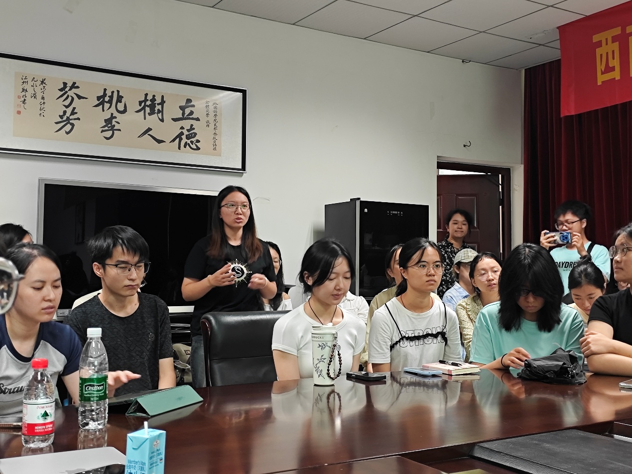 8月30日上午,重庆南开中学英语教研组组长黄丽萍老师应邀莅临我院,于313会议室为毕业生求职助力,带来了一场题为“学科素养如何转化为课堂竞争力——一名英语教师从校园到讲台的蜕变”的精彩讲座。讲座聚焦一线教学经验与教师校园时期成长路径,探讨学科素养的课堂转化机制,吸引众多学生到场聆听,现场座无虚席。活动由研究生辅导员许安琪主持。
