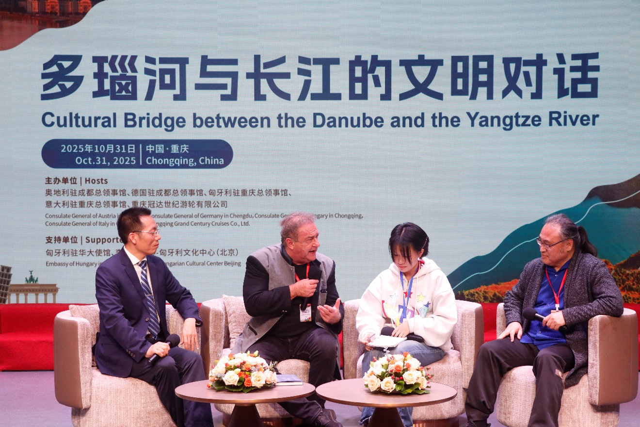 江河万古流,文明摇篮兴。当崇尚上善若水的华夏文明与倡导水乃万物之源的欧洲文明、联结古希腊哲思与维也纳乐魂的多瑙河与承载着三星堆青铜神韵与楚韵离骚的长江,在二十一世纪二十年代奔涌向前的中国交汇时,会碰撞出怎样的时代浪潮呢?2025年10月31日,由匈牙利、德国、意大利、奥地利四国总领馆联办、李斯特中心—匈牙利文化中心(北京)支持、中国冠达世纪游轮集团在重庆承办的“多瑙河与长江的文明对话”典仪给出了有力回答。该活动旨在挖掘不同文明间的独特性与共通性,让华夏文明的厚重与欧洲文明的璀璨交相辉映,为推动人类文明多样性发展注入新活力。