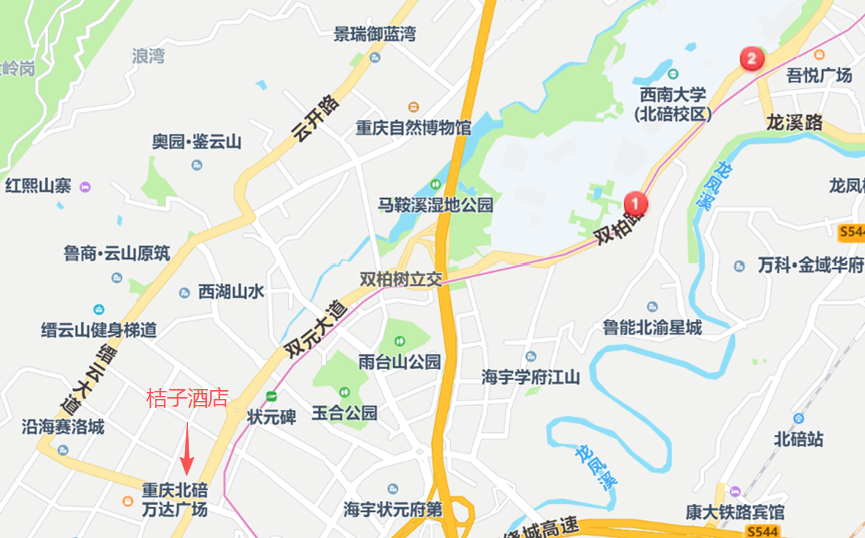 2. 报到地点:桔子酒店(北碚万达广场店)(重庆市北碚区北温泉街道双元大道368号楼3单元1层)。