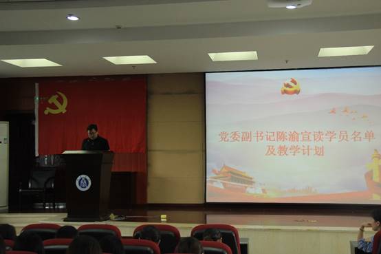 文旭书记作动员讲话。文书记从开展入党积极分子培训班的重要性和必要性谈起的。培训班意在加强学员对党的认识,端正入党动机,坚定入党决心,从思想和行为两个方面严格要求自己。文书记强调了党校培训是党员发展工作的一项重要制度,其加强了入党积极分子培养考察,提升了党性素养。寄语党校学员作为新时代青年要肩负起时代给予的责任和担当,立鸿鹄志,做奋斗者,练就过硬本领,增长知识才干,为祖国发展、民族复兴贡献力量。
