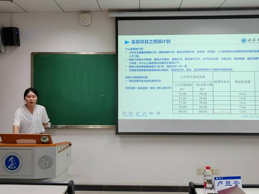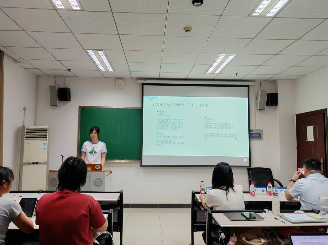 2022 级日语语言文学硕士生夏玉琳围绕“考公”背景下毕业生信息获取、岗位选择与备考策略进行了分享。她表示,毕业季的学生面临着就业、考研、考公等多种选择,同学们要学会从海量信息中筛选出可靠、有用的内容,避免被虚假信息误导。她鼓励同学们要勇于面对挑战,将个人的发展与国家和基层的需求紧密结合起来。她衷心祝愿同学们能够勇敢自信地迎接考公之路上的种种困难,为实现个人价值和社会价值而努力奋斗。