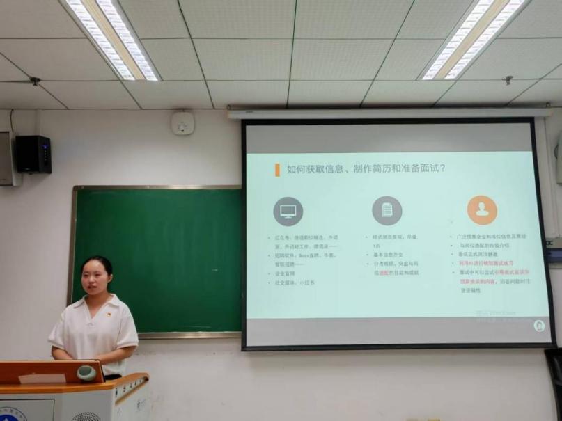2022 级德语语言文学硕士生、2025 年重庆市优秀毕业生吕安然结合自身丰富的求职经历,为同学们分享了就业选择的宝贵经验。她建议,同学们首要之举是深入了解自身性格特点与兴趣爱好,并紧跟市场需求,剖析各行业发展趋势与就业前景,以期寻觅到真正契合自己的职业道路。吕安然特别强调,在 AI 时代,我们要善于借助先进的技术手段来提升自己的竞争力。例如,利用 AI 进行面试模拟,通过反复练习,发现自己的不足之处并及时改进,为未来的职业发展打下坚实的基础。