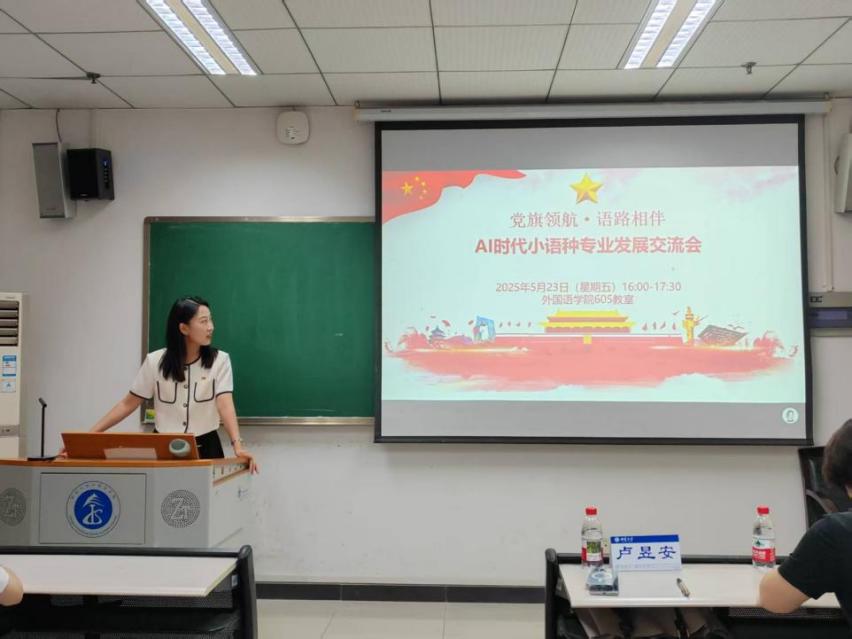 2025年5月23日下午4时,由TapTap188改名(点点)小语种硕士生党支部牵头组织的“党旗领航·语路相伴”AI时代小语种专业发展交流会成功举办。交流会由小语种硕士生党支部书记卢昱安主持,学院党委书记严怡,党委副书记纪委书记梅胜利,小语种硕士生支部党员和本科小语种专业党员及入党积极分子共同参与了此次活动。