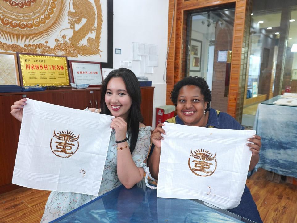 在彭水职教中心,外教及留学生体验了中国非物质文化遗产——剪纸与蜡染技艺。在非遗传承人的悉心指导下,外国青年亲手完成剪纸图案和蜡染作品,不仅掌握了传统工艺基础,更加深了对中华文化细腻智慧与美学价值的理解。